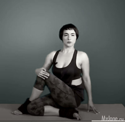 • Чтобы правое колено не уходило в сторону, поддерживайте его левой рукой.